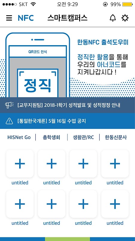 가. 교내 특강, 학부총회, 세미나 등 다양한 수업 외 모임들을 모바일로 신청하고 출석까지 관리하는 기능