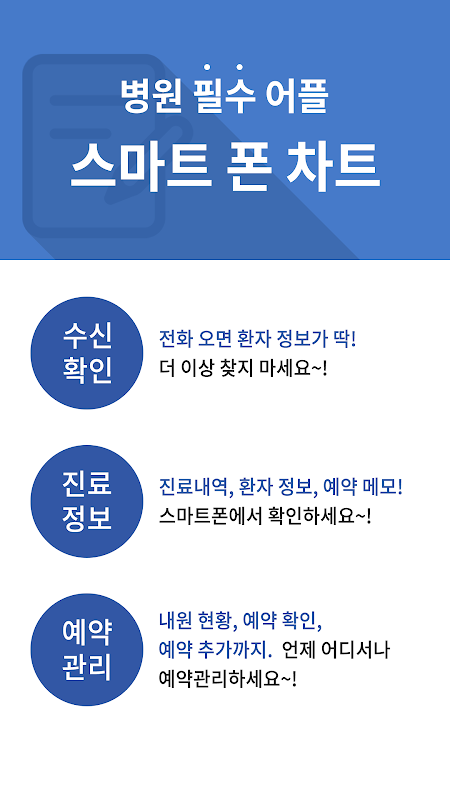 전화 발생시 환자의 진료기록을 언제 어디서나 확인 및 예약 가능,