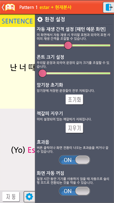 자동 재생 기능을 통해 매번 클릭하지 않고 한번에 학습할 수 있습니다.