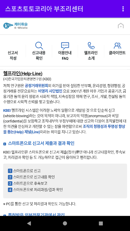 Sports Toto韩国荒谬报告中心是一个腐败报告APP,内部员工或外部利益相关者可以放心地进行报告。