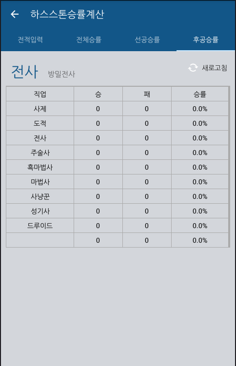 사용자가 간단한 데이터를 입력 후 승률계산을 해줍니다.