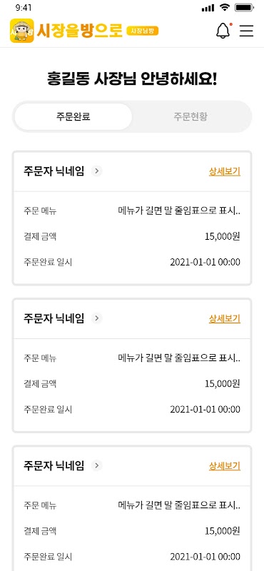 주문 상태 및 주문자 정보를 한눈에 확인 가능합니다.