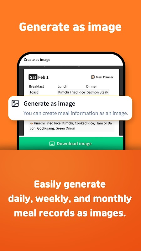 ✅ 将膳食记录转换为图像 – 一键将每日、每周或每月的膳食记录保存为图像