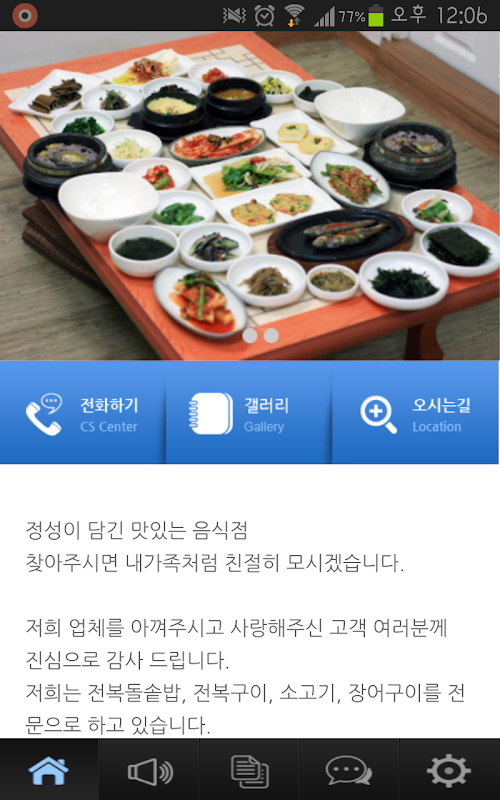 정성을 다하는 맛있는 음식과 최선을 다하는 서비스로 오시는 손님마다 즐겁고 편안한 식사시간이 되실 수 있도록 노력하겠습니다.