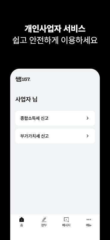 * Sam157® 是一款使用金融和私人证书生成身份验证信息的工具,支持在国税厅 Hometax(https://hometax.go.kr)上搜索税务数据。本应用不代表政府。