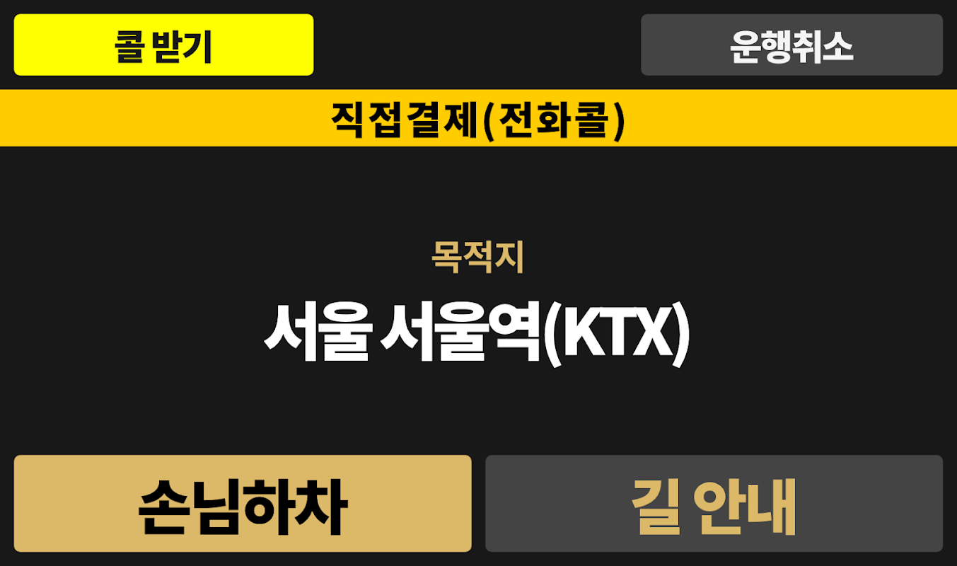 在呼叫接收屏幕上,直接支付为黄色,自动支付为蓝色。