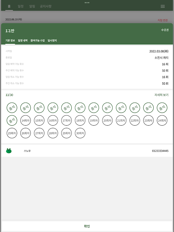 这是Hobby Music & Art Academy ART FOREST会员的课程安排预约管理系统。