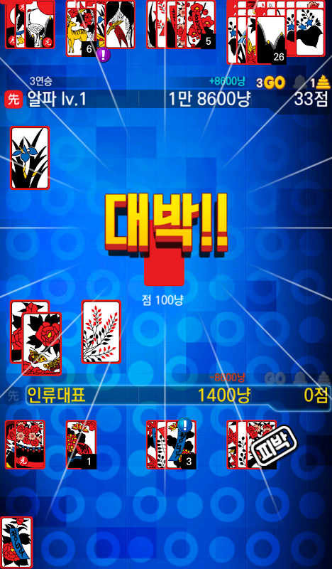 - 알파고스톱은 플레이어와의 대전을 통해 보다 높은 수준으로 진화합니다.