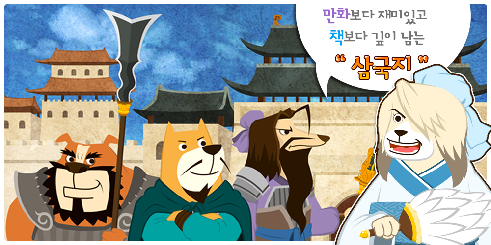 유명 성우들이 대거 참여한 삼국지는 세계 최초로 강아지를 캐릭터화 하여 친근함을 더했습니다.