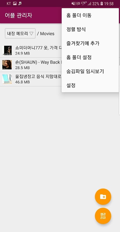 - 앱 최신설치순 용량순 이름순등으로 소팅 지원