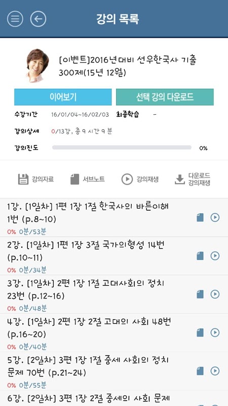 단강 당 1개의 서브노트를 작성할 수 있으며 서브노트 메뉴 및 강의수강도중 플레이어와 강의리스트에서도 작성할 수 있어 학습장소와 방법에 제약 없이 효율적인 학습이 가능합니다.