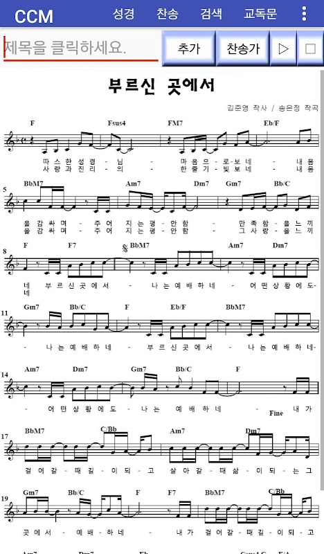 14. ccm은 악보와 가사를 넣으면 볼 수 있습니다.(사용설명 참조)