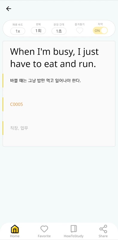 根据技能水平,分为情景、主题、章节,您可以在OPIc和TOEIC口语考试专用答题的6000个句子中只收藏您想要的句子,无限选择、关注。一款专门为考生提供的应用程序,可以让考生通过自动重复学习的方式来记忆英语句子。