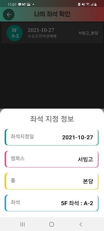 좌석 큐알 스캔시 좌석정보 UI 변경