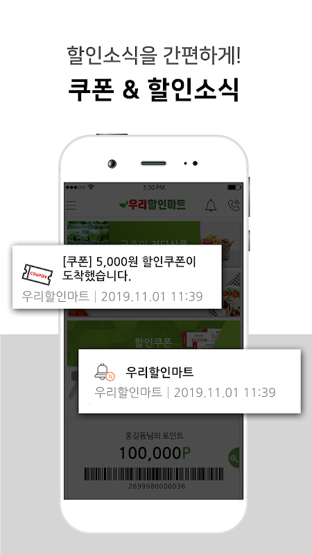 - 우리할인마트의 포인트 카드를 모바일로 편리하게 이용하시고, 언제 어디서든 포인트를 확인하실 수 있습니다.