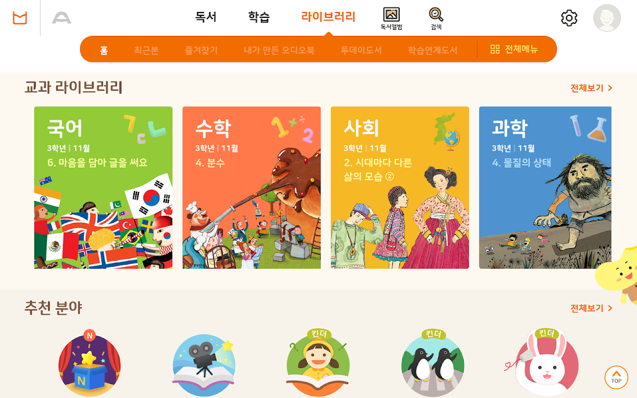 - 수학, 국어, 사회, 과학을 담은 학습라이브러리로 공부자신감을 만나다.