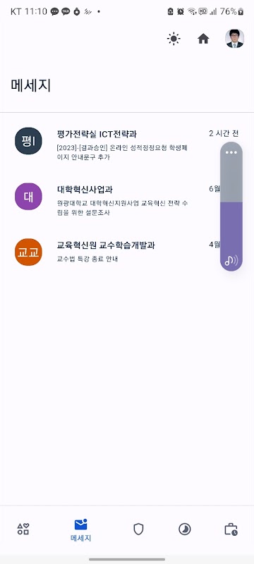 1. 기존의 개별 메세지 단위로 전송받던 UI에서 발신자 그룹별로 메세지를 확인 가능하도록 UI 변경 2. 메세지 별로 이미지, 일반파일, 유튜브, 음성, 동영상 등 수신 및 뷰 3. 메세지 그룹별 일괄 삭제 처리 4. 메세지 공식 채널을 추가 5. 정보시스템 인증 시 필요한 OTP 생체인식 추가 (생체인식 미사용시 처리 안함) 6. 교원, 학생, 대학원생 등 금학기 시간표 연동 7. 학내 학사일정 등 연동