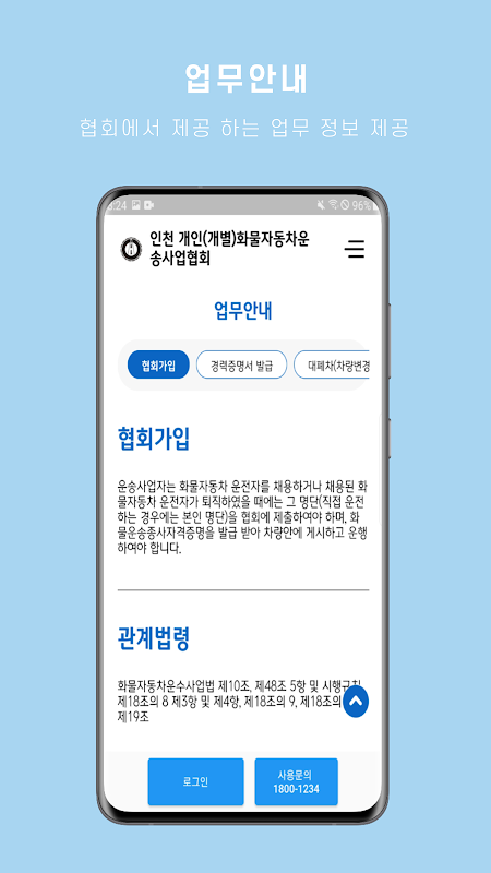 ■ 仁川個人(個人)貨物運輸商業協會網站的主要服務已經實現為應用程序,以便可以在移動設備上使用。