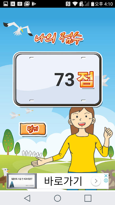 첫 화면에서 시작하기를 터치하시고 다음 화면에 나타난 "Go"를 터치하면 퀴즈 풀기가 시작됩니다. 정답과 오답이 될때마다 "O"와 "X"가 나오는데 이를 터치해야 다음 문제로 넘어갑니다.