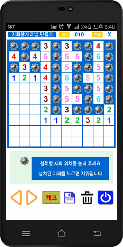 스마트메이커로 만든 지뢰찾기는 게임을 하는 재미도 있지만 문제를 스스로 만들어 갈 수 있습니다.