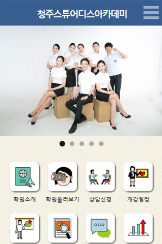 2010년 청주에서 유일하게 항공승무원, 항공운항과 입시 전문반으로 시작해서 7년동안 청주에서 수많은 합격생들을 배출하였습니다. 정직 최선 최고를 목표로 학생들을 위해 늘 묵묵히 최선을 다하면서 교육에 임했습니다. 여러분들의 꿈이 완성되는 순간 그때까지 여러분들과 함께 하겠습니다.