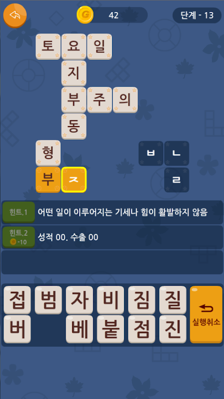 초성 퀴즈를 가로세로 퀴즈 형식으로 즐겨보세요.