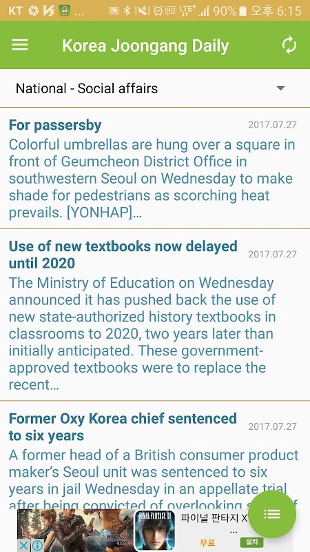 이 어플은 4개의 국내 영어신문과 8개의 해외 영어신문을 볼수있는 어플입니다.