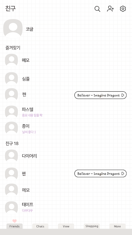 • 카카오톡 테마 - 심플 라인_마시멜로 (카톡테마) 截图 3