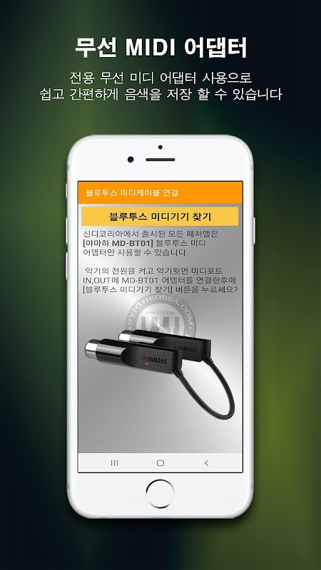 ※ 신디코리아 앱전용 무선블루투스 MIDI 어댑터는 YAMAHA MD-BT01 제품입니다.
