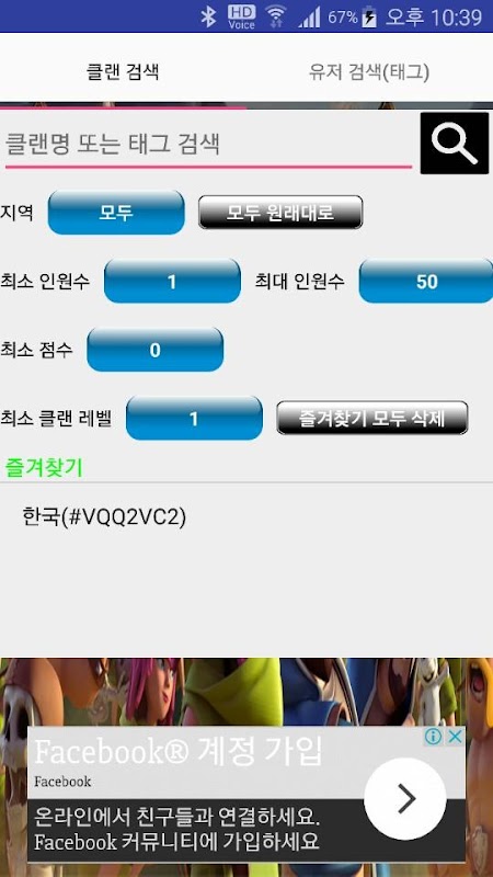 즐겨찾기에 클랜, 플레이어 항목을 각각 20개까지 추가할 수 있습니다.