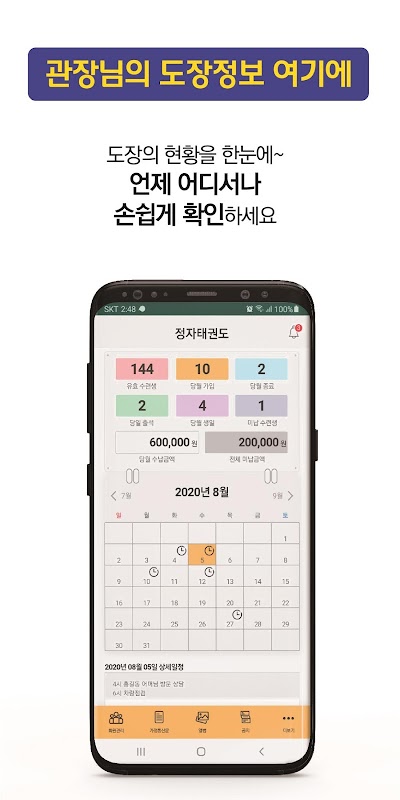 跆拳道之友提供了一个管理系统和经理APP,可以方便,轻松地使用跆拳道主管的道场整体管理。