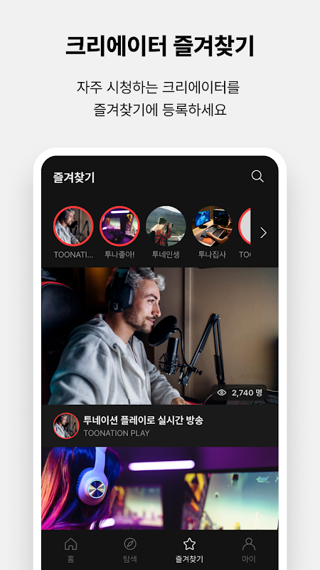 在Toonation Play中通过聊天和赞助Toonation与创作者交流,享受实时网络广播和直播!