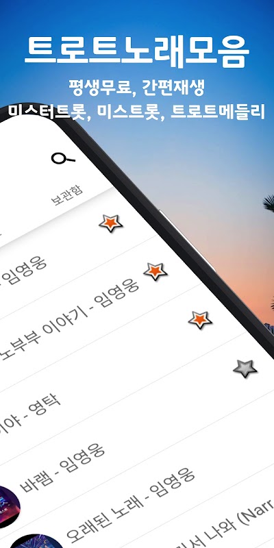 트로트 명곡부터 트로트 메들리까지 최고의 인기곡들을 손쉽게 한번의 터치로 연속재생할 수 있습니다.