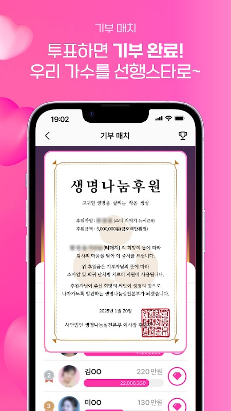 스타 리매치W - 여자 트로트 가수 응원, 기부, 광고