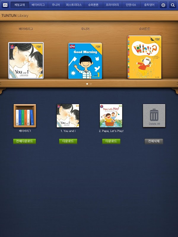 튼튼라이브러리는 튼튼영어의 모든 배움과정의 교재, 영상, 음원 등을
