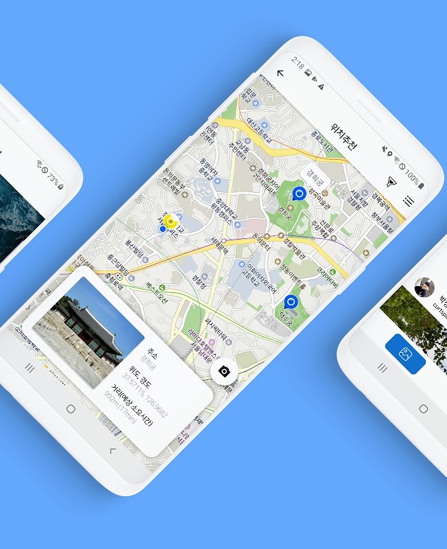 사용자가 촬영한 사진의 촬영지 위치를 지도상에 표시합니다.