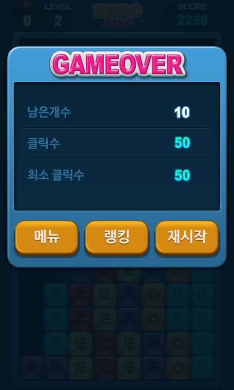 최종 남겨진 블록의 개수가 작을수록 점수가 많으며 모두 제거하면 루비가 지급됩니다.