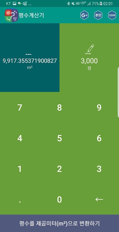 가볍고 쉽고 빠른 인터페이스를 제공하는 평수계산기 입니다.