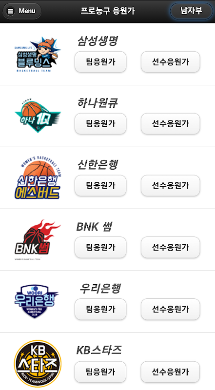 它是为了让每个人都能享受职业篮球的欢呼文化而创建的,以及 10 支职业篮球男队(大邱韩国煤气公司、安养 KGC、水原 KT、原州 DB、全州 KCC、首尔 SK、高阳胡萝卜、首尔三星、蔚山现代摩比斯、昌原 LG)和 6 支女队(友利银行、三星生命、BNK Some、新韩银行、KB Stars、Hana One Q)的团队应援曲、选手应援曲、共同应援曲、难忘的应援曲被包含在内。