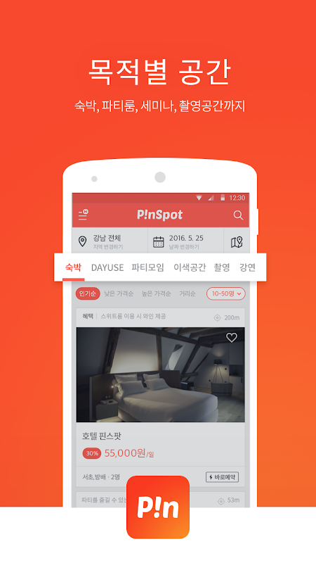 핀스팟 - 숙박, 대실, 펜션, 파티룸, 모임공간 예약 2.6.16