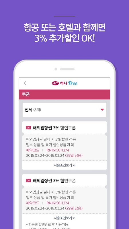 - 해외항공 예약 시 해외호텔 7% 할인쿠폰 지급