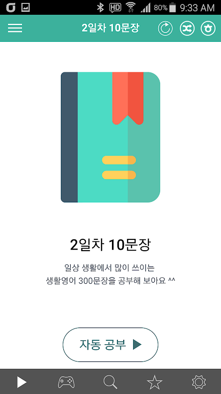 "자동"을 선택하면 어플을 내려도 백그라운드에서 계속 실행되기 때문에 음악을 듣는것 처럼 이어폰으로 어디서든지 반복 학습 할 수 있습니다.