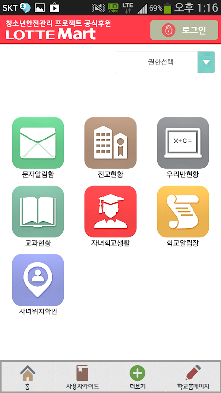 APP을 설치하기전 LotteMart와 (주)케이엘네트웍스 의 학교안심서비스 프로그램에 가입 여부를 확인해 주시고 ID / PW 분실 시 학교안심서비스 홈페이지 http://m.schoolcare.co.kr 에서 ID / PW 찾기를 진행해 주시기 바랍니다.