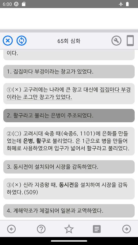 我们整理了韩国历史能力考试(韩国历史考试)、高级4-46级和高级47-72级的历年试题和解释,共计3,450道。
