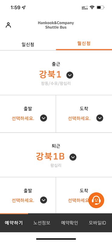 您可以通过 Korea & Company 通勤巴士应用程序预订和使用通勤巴士。