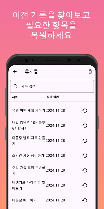 • 回收站功能允许您检查已删除项目的删除日期并搜索和恢复它们。