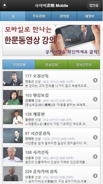 한자한문공부 사이버서원 Mobile