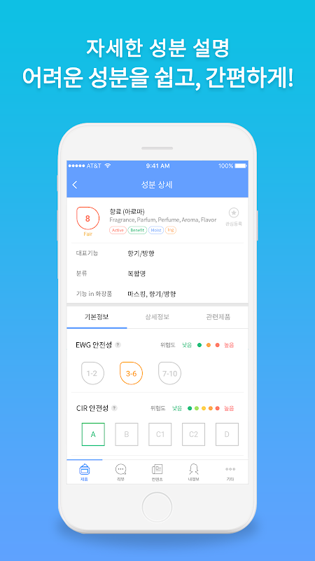 - 실생활과 밀접한 브랜드와 제품의 정보 및 제품의 전성분과 주의사항, 기대효과, 각 성분의 안전성 평가 등 제공
