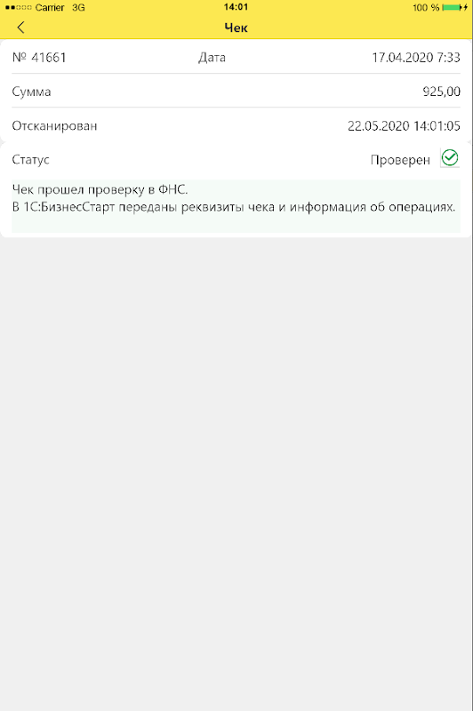 此类支票由俄罗斯联邦税务局自动验证,其详细内容可在 1C:BusinessStart 和 1C:Accounting 8 服务中获取,用于自动填写预先报告、运单或文件“企业家费用”。