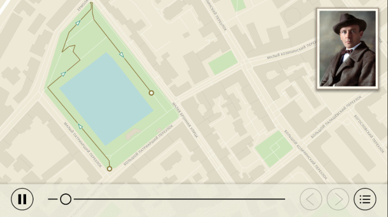 ПРОГУЛКА НАЧИНАЕТСЯ у серого дома (Большой Патриарший переулок 8) это в одном километре от метро «Маяковская». Найти несложно: это справа от павильона (если смотреть со стороны пруда).